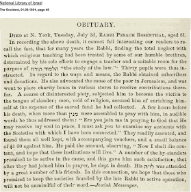הנה הקטע בהעיתון "אקסידנט" על פטירת ר' פסח ראזענטהאל ז"ל